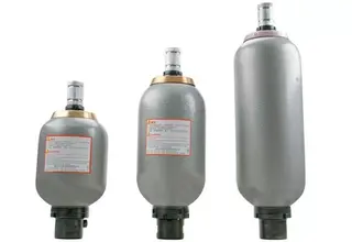 At present, the most commonly used accumulator is the pneumatic-hydraulic type. The action of gas is similar to that of a buffer spring, and it works together with fluid, separated by a gas piston, a thin diaphragm or an airbag.