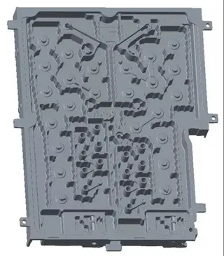 Figure 1 is a structural picture of a certain filter for a communication component. The weight of the casting is 3 kg, and the material is DC01. The size of the casting is 414×333×38 mm. The maximum wall thickness is 4 mm. The minimum wall thickness is 2 mm, and the average wall thickness is 3 mm. The inner cavity is staggered with ribs similar to the labyrinth structure, which is a relatively complex casting. This part is a filter used in mobile communication transmitter base stations with high technology so far. Compared with the traditional filter, its internal cavity structure is more complicated, and there are many and complicated labyrinth structures. The wall thickness is uneven, and there are many columns and mounting holes. The complicated structure will inevitably lead to insufficient filling of the molten aluminum and the occurrence of partial wrapping gas in the casting. In addition, the requirement for internal compactness of the casting is high, and the product needs to be electroplated. When the casting is electroplated and baked, the gas in the hole is heated and expands, which will cause bubbles on the surface of the casting. Therefore, appropriate methods must be used to solve the gas hole in the production. How to reduce the gas in the casting is a difficulty in the design of the entire die-cast process.
