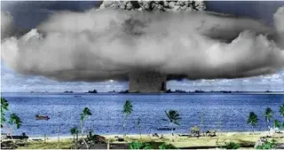 It was originally unknown to people, but suddenly became famous because the United States used it as a nuclear test site. On July 1, 1946, the world's first peacetime atomic-weapons test was conducted at Bikini.