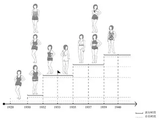 Figure 21 Changes in styles of women's swimsuits in the Republic of China