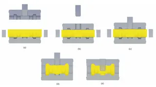 (a) Initial state (b) During billet upsetting (c) Flange upsetting (d) Center of upsetting die cavity