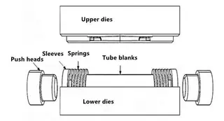After decades of technological development, some experts and scholars at home and abroad have slightly improved the forming of tees, for example, pipe fittings formed by high pressure in a hot state. First, heat the mold to the specified temperature, then put the tube blank in the cavity to preheat; inject the hot medium into the pipe. When the pipe reaches the set temperature, start to apply pressure and axial feed to form the tube close to the inner cavity of the mold, forming a hollow variable cross-section part. Jianchun He and Xiaoting Xiao and others from the Guangdong University of Technology used the ABAQUS explicit algorithm to simulate the tee, and used the influence of the axial displacement variable and internal pressure variable on the height, maximum and minimum wall thickness of the formed branch pipe, and analyzed the distribution of wall thickness of each part of the tube blank. Explore the principle of material replenishment of the branch pipe. Combining the traditional internal high-pressure forming technology of tees with the newly designed mobile die forming technology, a new forming process for the branch pipe of the tee is designed, and the double-side mobile branch pipe forming process is explored according to the displacement variables and internal pressure variables. In the study of hydroforming, Jun Young Park and Sang Wook Han from Pusan National University, South Korea, proposed an advanced sealing system composed of a die spring, a cylindrical sleeve and an end punch, as shown in Figures 1-3. This sealing system prevents hydraulic leakages and ensures the internal forming pressure by increasing the contact between the axial force of the punch and the reaction force generated by the punch.