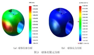 The results of the static analysis of the sphere are shown in Figure 3. It can be seen from the analysis results that the stress is concentrated at the position of the upper shaft hole. The maximum stress exceeds the yield strength. The spherical stress is small. Elastic deformation occurs, which is uneven. The maximum deformation occurs at the horizontal ball mouth position, and the deformation amount is about 0.01805mm.