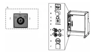 Master switch a b emergency stop c motor power-on d mode switch F.USB port g network cable l teaching device port 1. Manual deceleration mode 2. Automatic mode 3. Manual full-speed mode.