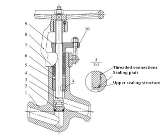 Seal rings can avoid the medium leaking from the thread part. The sealing seat has an upper sealing function. After the valve is opened, the valve stem acts on the sealing seat to form an upper seal, so that the packing can not be affected by the medium, extending the service life of the packing and realizing the replacement of the packing under pressure. The sealing seat has the function of preventing the valve stem from coming out when the stand or the eyelet bolt is broken, and the occurrence of accidents is avoided.