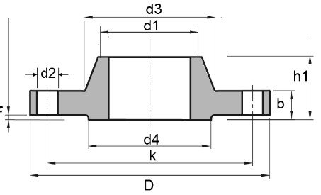 DN | d1 | DIN 2999 | D | b | k | h1 | d3 | d4 | f | No.of holes | d2 | KG/PCS |