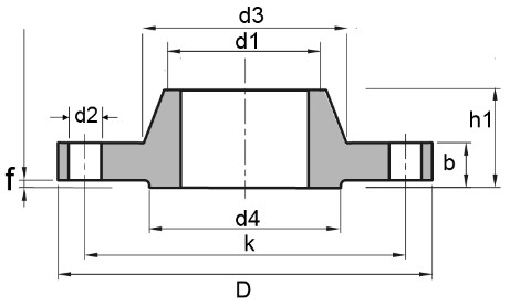 DN | d1 | DIN 2999 | D | b | k | h1 | d3 | d4 | f | No.of holes | d2 | KG/PCS |
