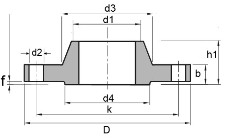 DN | d1 | DIN 2999 | D | b | k | h1 | d3 | d4 | f | No.of holes | d2 | KG/PCS |