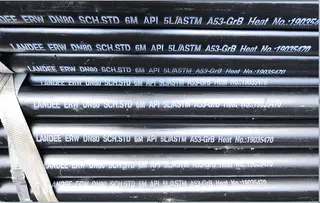 ASTM A53 ERW steel pipes, Grade B, SCH40. OD219.1mm, Length: 6 or 12 Meters, Anti-Rust Black Coating Surface