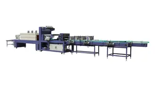 Applying imported PLC procedure automatic control, stable performance, and accurate control. Enjoying full-automatic function of feeding, tube management, shrinkage, and cooling shape fixing flow. Film transportation is adopted with sensor switch control, adjustable delivery film length, and can reduce wastage. Elect motor is adopted with an imported transducer to control, realizing unlimited speed regulating. Advanced spiral wind circulating structure, three-layer insulation treatment, and energy conservation. Reinforced cooling shape fixing channel to ensure packaging products shape quickly and convenient storage and transportation. Bottle entering, Automatic unscrambling bottle, Pushing bottle, Heat sealing, Saw cutting, Pressing PE, Shrink, Cooling.