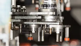 The cam-controlled application fork reliably transmits the sleeve label onto the container. Even humidity and moisture do not affect machine operation: In any case, it ensures perfectly fitting sleeves.